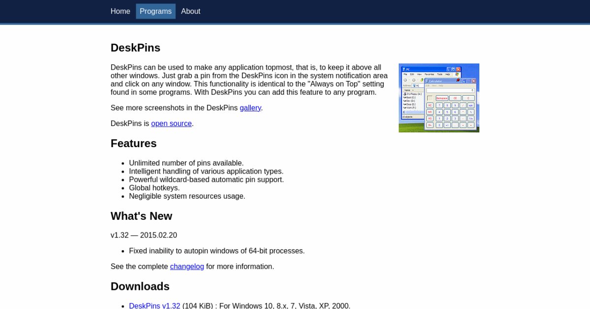 - 1位:DeskPins(日本語表示できないが、どのウィンドウが前面設定されているかがわかりやすい、さらに前面設定解除もワンクリックでできて使いやすいから)